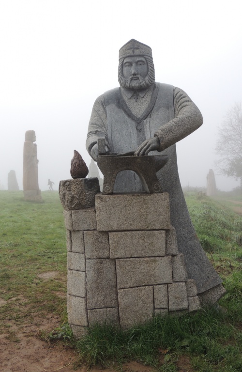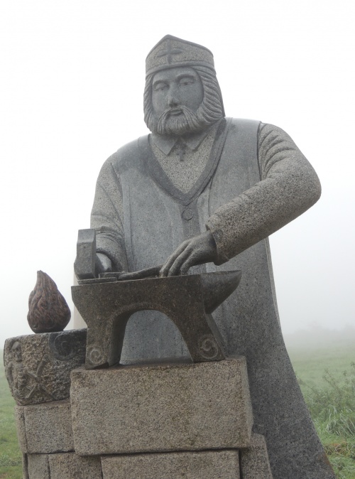 Son nom a été donné également au ruisseau, vallon et jardin botanique du Stang-Alar à Brest, ainsi qu'à la vallée de l'Odet à quelques kilomètres au nord de Quimper, les gorges du Stangala. Sur ce dernier site une légende principale lui est attachée, à savoir le saut qu'il a effectué d'un versant à l'autre alors qu'il était poursuivi par des brigands. Des statues polychromes le représentent dans les églises de Pleyben, Brasparts, Locronan, Plozévet et à la chapelle St-Guénolé d'Ergué-Gabéric Courant septembre 2017, une statue monumentale de plus de 3m50, en granit de Cleder, a été réalisée par les sculpteurs Patrice Le Guen et Jean-Philippe Drévillon sur le site de la Vallée des saints de Carnoët. Le saint est représenté martelant un fer à cheval sur un établi de forge, la vasque contenant le feu est gravée d'une représentation de la mort ou d'un diable. |