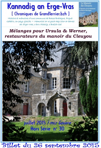 La belle et grande fête du 2 août 2015 au manoir du Cleuyou n'a pas fait l'objet d'articles dans les journaux locaux, car c'était un évènement privé. Néanmoins on peut dire qu'un livret « Mélanges pour les restaurateurs du Cleuyou » y a été présenté, rassemblant tous les articles publiés sur le site GrandTerrier.bzh depuis la sortie du livre « Le Manoir du Cleuyou, l'histoire d'un bâtiment » de Werner et Ursula Preissing.