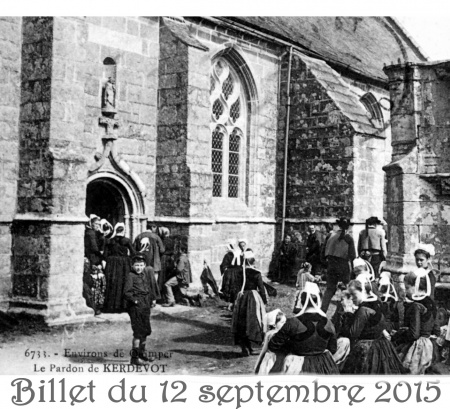 Au programme de ce week-end de rentrée 2015, il y a bien sûr le fameux pardon de Kerdévot. À cette occasion on se devait de compléter la collection des 6 cartes postales du photographe Joseph-Marie Villard présentant ce lieu saint au début du siècle dernier.