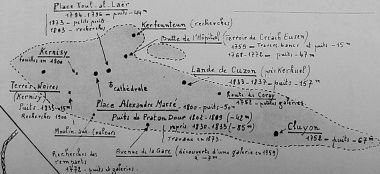 Les géologues Alphonse-Auguste Rivière, Yves-Alain Fuchs et Bernard Mulot ont dressé des plans et cartes géologiques de l'endroit sus-mentionné dans le cadre de leurs études du bassin