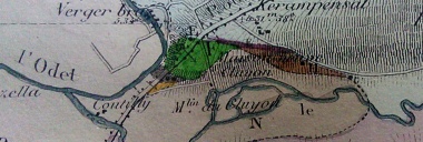 Dans le rapport de 1812, l'ingénieur Bonnemaison quant à lui décrit les lieux : « Le terrain est inégal dans sa surface, dans l'est un affleurement a lieu au dessus du moulin du Cluyou, il est déposé en se relevant contre le granit émétique auquel il se joint par un dépôt glaiseux et constitue le penchant d'un côté incliné au pied duquel coule l'Odet. Un dépôt se trouve au milieu de la route de Coray, tantôt terreux, charbonneux, tantôt glaiseux, charbonneux, blanchâtre accompagné et envelopé des noyaux et des boules de poudingue psammilique. »