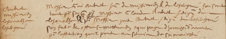 Guy Autret, seigneur de Missirien et de Lezergué, fait la déclaration pour lui-même, son père et son frère et formule un engagement collectif à servir : « offre se mettre en équipage d'homes d'armes pour l'attention qu'il porte au service de Sa Majesté ».