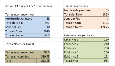 Fouage cornouaillais de 1395, onglet récapitulatif :