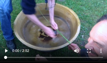 On posait une bassine sur un trépied puis un individu prenait deux joncs de pré très longs et résistants et les posait en travers sur la bassine au fond de laquelle on mettait de l'eau ; »
