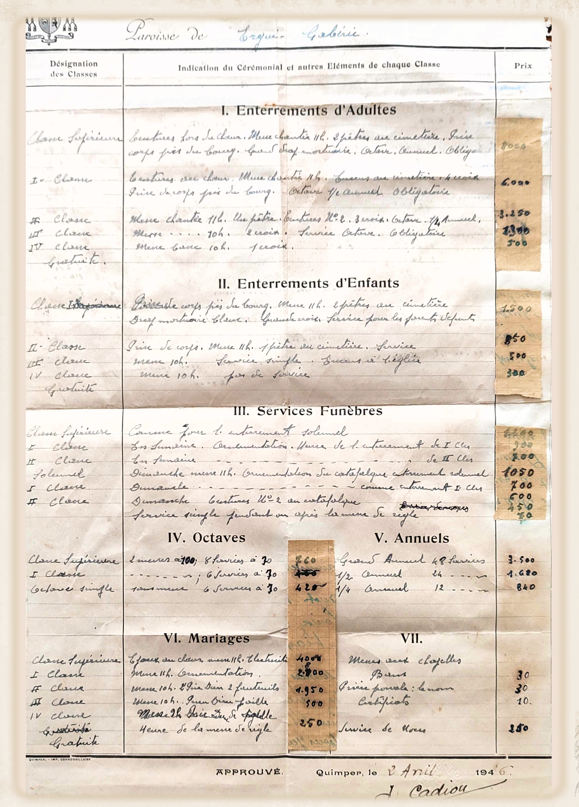 - 1946-196x - La tarification des cérémonies religieuses de secondes classes