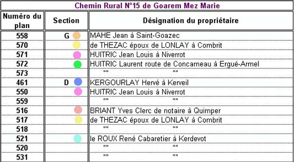 - Chemins ruraux : N°15 de Goarem Mez Marie