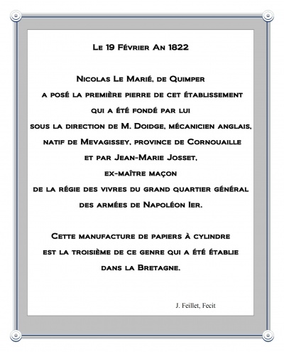 En savoir plus : « La plaque inaugurale de la manufacture de papiers d'Odet en 1822 »