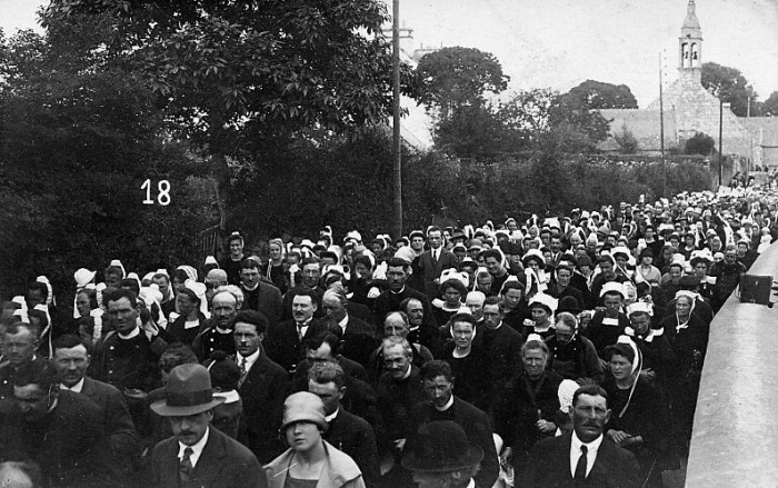 Deux photos des funérailles de René Bolloré au bourg d'Ergué-Gabéric le 19 janvier 1935 [1]