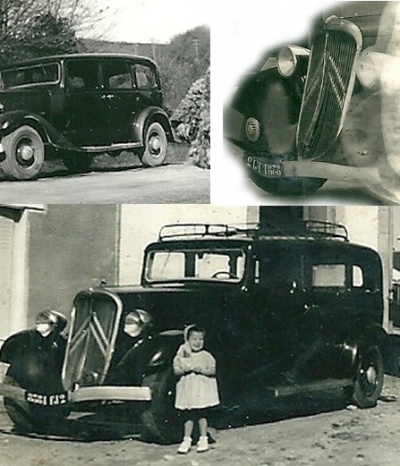À son retour de captivité en juin 45 Hervé Balès a repris sa voiture pour faire le taxi. Il était très sollicité pour les trajets du Bourg du Grand Ergué à Quimper. Avec ses 7 places régulières et les 3 à 4 places supplémentaires des enfants c'était un véritable mini-bus. Les anciens du Bourg se rappellent de ces virées où, jeunes à l'époque, ils étaient entassés dans le taxi dans la joie et la bonne humeur.