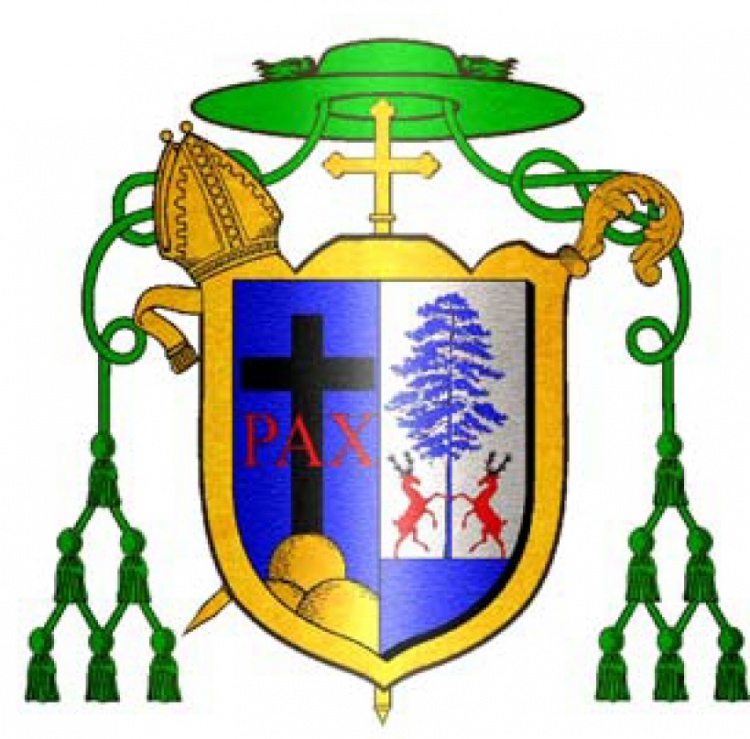 terrassé d’azur soutenu par deux cerfs affrontés de gueules, ramés de sable. », et était porté par Charles Nouvel de la Flèche (1814-1887), évêque de Quimper de 1872 à 1887 et moine bénédictin