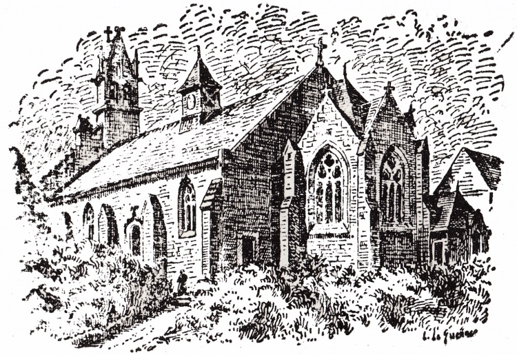 Une belle petite chapelle enclose entre les bâtiments de la papeterie et le manoir Bolloré. Elle fut rebâtie en 1921 sous la maîtrise d’œuvre de l'architecte nantais René Ménard. Le mémorialiste Louis Le Guennec en fit la description, peu de temps après son élévation : « c'est l'un des plus jolis édifices religieux du pays de Quimper ». Autres articles : « Les églises et chapelles gabéricoises » ¤ « La création de la manufacture d'Odet et ses fondateurs » ¤ « Les cloches du Centenaire d'Odet en 1922 par Théodore Botrel » ¤ « LE GUENNEC (Les amis de Louis) - Histoire de Quimper Corentin et son canton » ¤ « 1912-1913 - La question de la réorganisation du service paroissial à la papeterie d'Odet » ¤ |