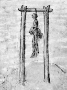 Rappelons que ces fourches représentent les poteaux soutenant des poutres auxquelles sont suspendus les cadavres des délinquants condamnés à mort. Seul le seigneur Haut Justicier a le droit d'avoir ces justices patibulaires sur son domaine, puisqu'il a le droit de condamner un criminel à mort. Selon le titre et la qualité des fiefs qui ont droit d'en avoir, les fourches ont 2, à 3, à 4 ou à 6 poteaux piliers.
