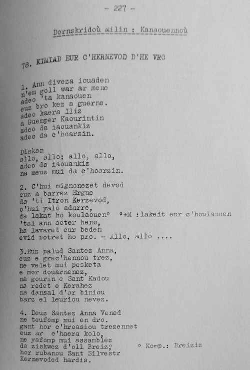3. De Sainte-Anne-de-la-Palud, du haut des coteaux élevés, nous ne verrons plus pêcher dans la mer de Douarnenez. Ni lutter à Saint-Cadou, ni courir à Carhaix, ni danser au son du biniou sur les aires neuves.