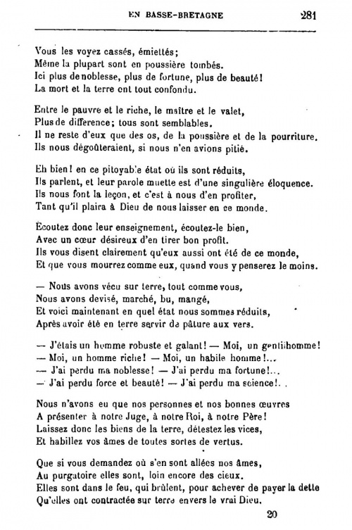 Je savais la prière spéciale qu'il fallait lui adresser, qui, en breton est un cantique, et qui se chante sur le plus bel air que je connaisse en breton :