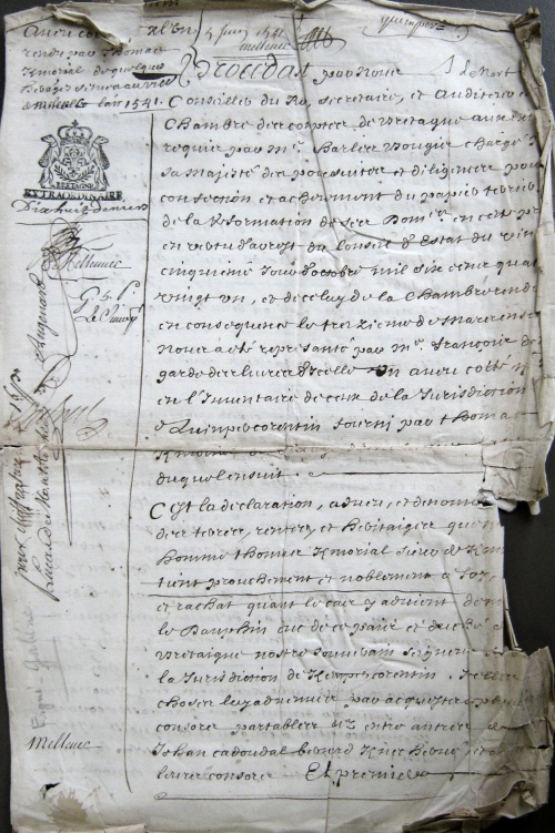 | La déclaration du seigneur de Kermorial pour ses terres nobles au village de Mélennec.