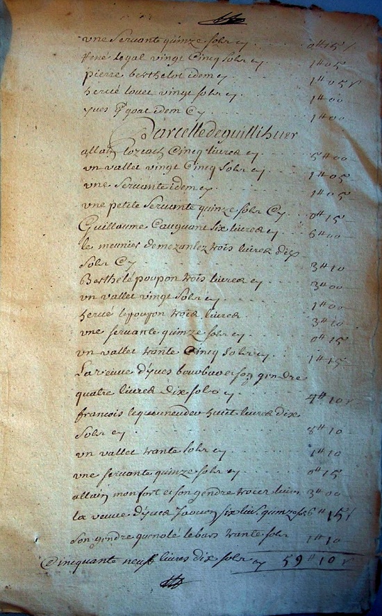 - Source, cote : B 3539, Archives Départementales de Loire-Atlantique (Chambre des comptes, Capitation de tous les contribuables, Rôles de l’Évêché de Quimper, Paroisses A à F)