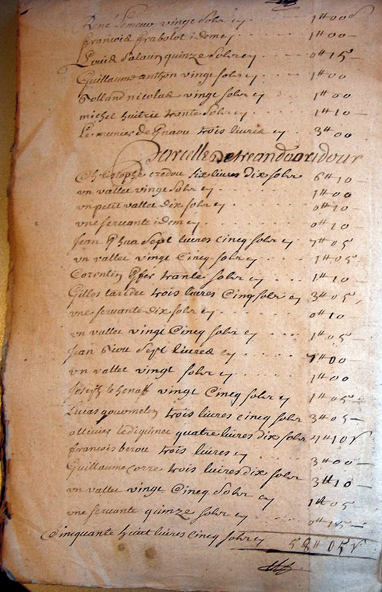 • Source, cote : B 3539, Archives Départementales de Loire-Atlantique (Chambre des comptes, Capitation de tous les contribuables, Rôles de l’Évêché de Quimper, Paroisses A à F)
