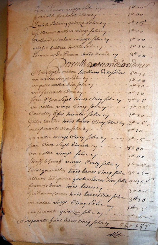 - Source, cote : B 3539, Archives Départementales de Loire-Atlantique (Chambre des comptes, Capitation de tous les contribuables, Rôles de l’Évêché de Quimper, Paroisses A à F)