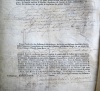 La fabrique [1] de la paroisse d'Ergué-Gabéric à sa charge de la fondation cy après [...] ce conformément à la délibération des habitans et marguillers de la dite paroisse en datte du quatorze aoust dernier, inscrit aux Registres de la dite paroisse dont une copie délivrée par le sieur Crédou [..] que l'original a été [...] à Quimper le dix neuf du même mois, représenté par Jean Charles Thomas sei[...] Ducourtray bourgeois de Paris demeurant rue du [...] paroisse de St Nicolas des Champs [...] et à la réquisition [...] des présentes après avoir été de lui certiffié véritable, signé et paraphé en présence de [...] soussignés Sr Ducourtray [...] pour la dite fabrique [1] comme ayant [...] quarante livres.