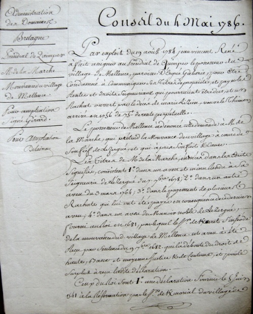 1786 - Conseil du présidial pour la contestation de la mouvance de Mellenec