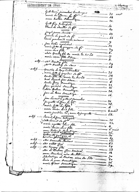 • Professions relevées : Journalier, Domestique, Cultivateur, Boulanger, Aubergiste, Sacriste, Maréchal, Prêtre, Tailleuse, Coordonnier, Recteur, Curé, Clerc tonsuré