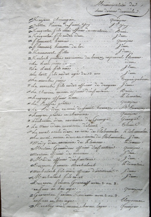 - Quimper | M. | Lamarche fils | Officier | Célibataire | . | . | 1 500 | Il a servi au Régiment des Dragons