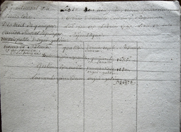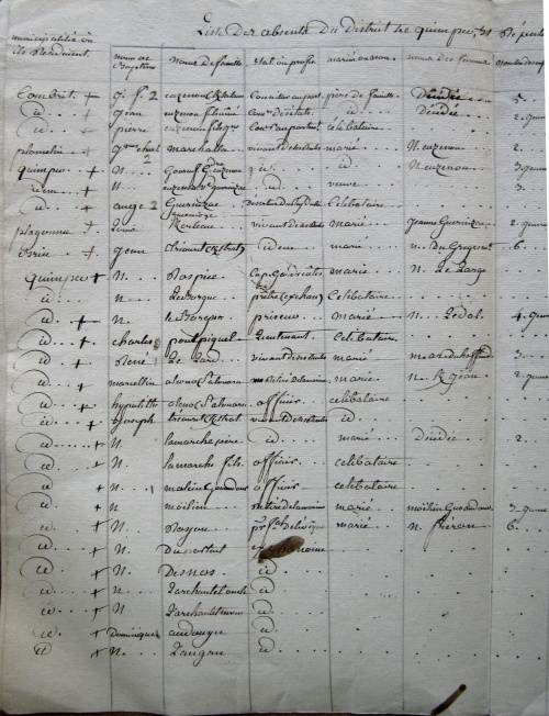 - Lamarche, père | François-Louis | . | Ex-noble | Quimper | Pluguffan, Kerfeunteun, Penmarc'h, Cuzon, Ergué-Gabéric | 1792