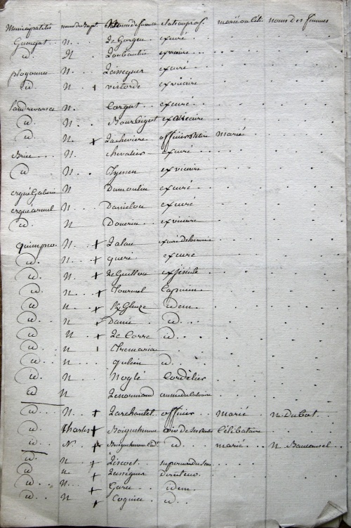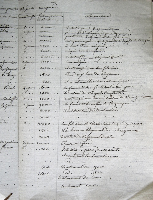 Liste des émigrés, noms, prénoms, qualités, dernier domicile connu, ressources.