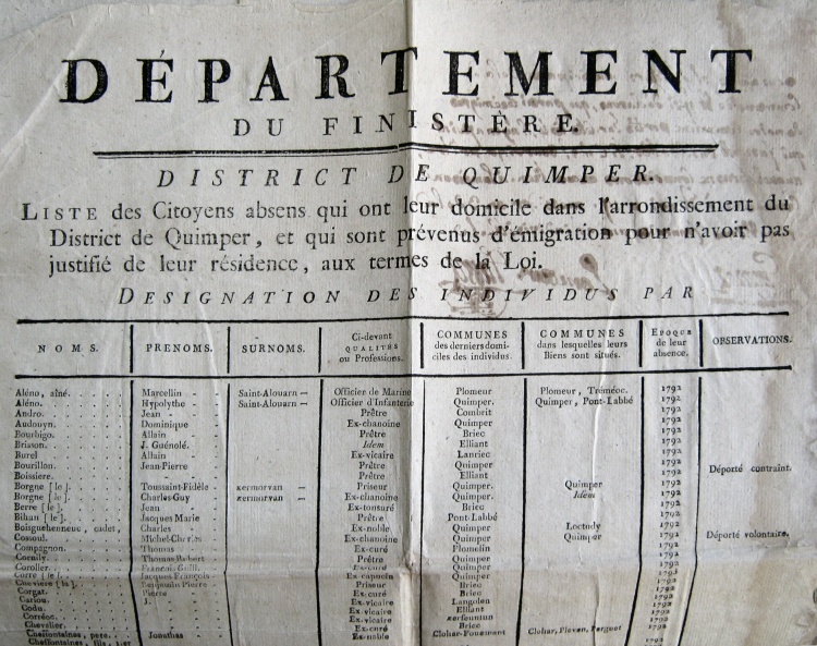 - Dumoulin | Allain | . | Ex-curé| Ergué-Gabéric | . | 1792