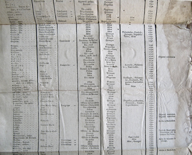 - Valet | Jean François | . | Prêtre | Quimper | . | 1792 | Déporté contraint
