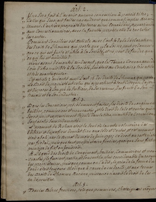 Cet article a annéanti aussi l'artide 16 des droits de l'Homme qui porte que « le droit de propriété est celui qui appartient à tout Citoyen de jouir & difposer à son gré de ses biens, de ses revenus, des fruits de fon travail & de fon industrie ».