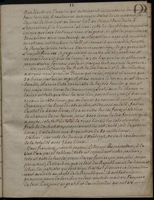 Vous fremissez, nous le voyons, citoyens Repréfentans, à la vue d'un pareil tableau ! Telle est cependant notre position, telle est celle de tous les propriétaires fonciers, un peu plus, ou un peu moins ; croira-t-on que ce sont des républicains, des hommes libres, des patriotes qui sont ainsî
