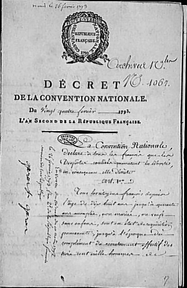 1793 - Levée de 12 citoyens pour le contingent communal