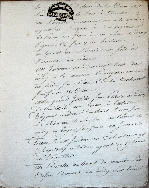 Dans le dit jardin un colombier et chapiteaux en taille ayant dix sept pieds [11] de diamettre.