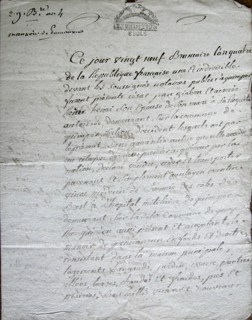 1795 - Vente du manoir de Pennanreun de Jean Girbon au citoyen Vinoc