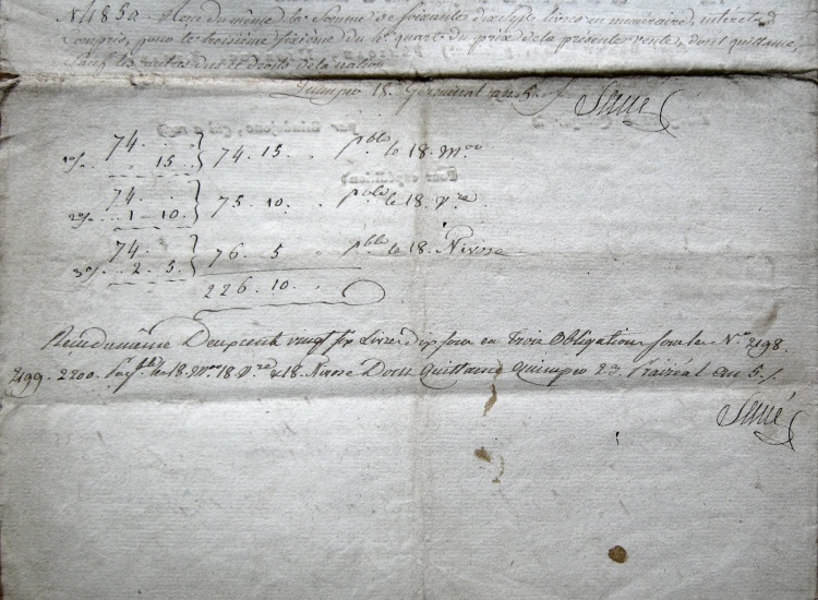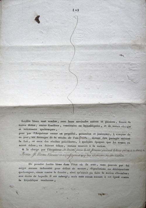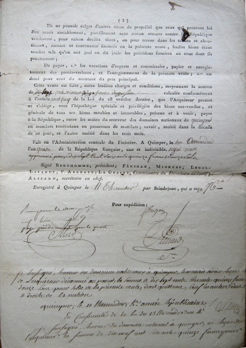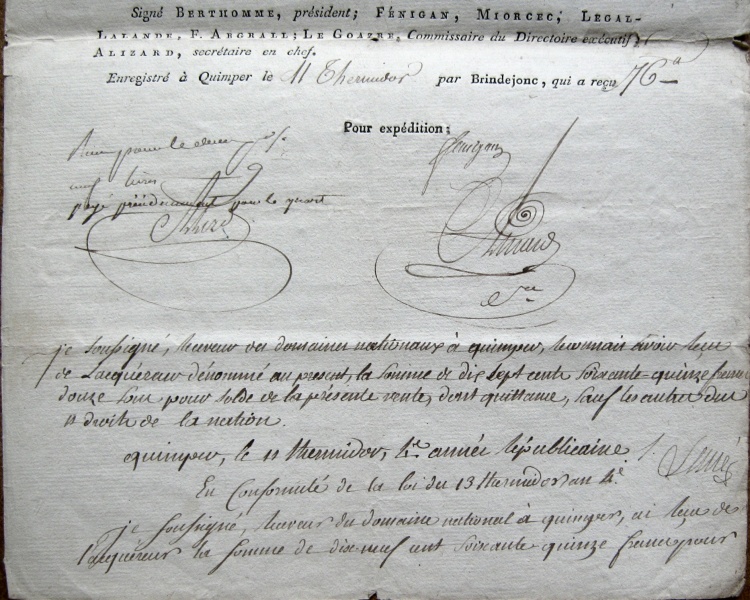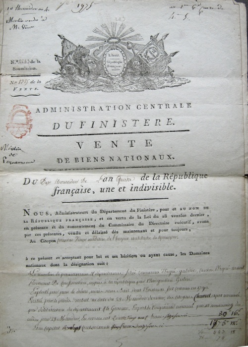 1796 - Vente en Bien National du moulin de Pennarun à Corentin Vinoc