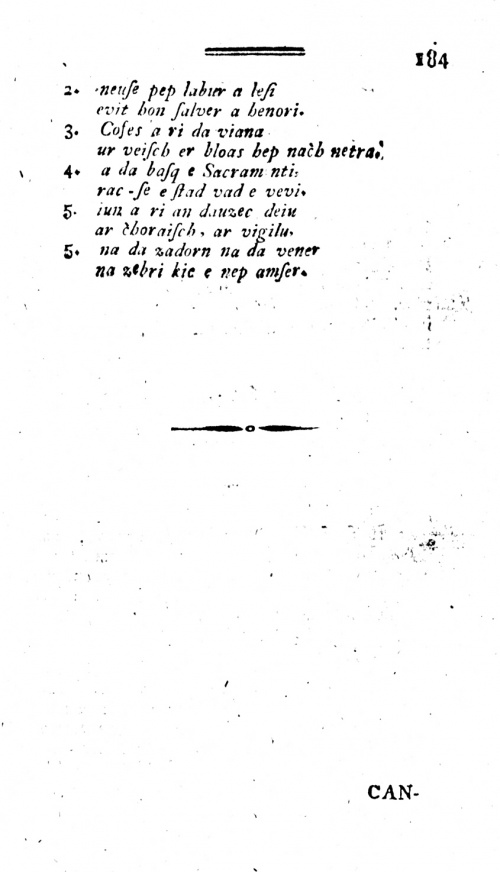 a bell amzer ne mus recevet kelu ebet us bo pers. Desirut a raffen geseude gazut a iac'h ez oc'h : rac netra ne ra din mui a blijadur evit cleut kelu mad ac'hanoc'h, us ma mam, ac us ma oll gerent : aschuet e mus ar retorig, ac hep dale e allin monet dar vacanzu, abeue dau zeves ez-eo bet e public distribuet ar priziu ; ar boner em us bet da c'honit tri friz. a da veza bet eurunet dirac un assamble a gals tud a sesson : hunne ez eo an oll gonsolation allan rei ser e allin eta, ma zad ker, cauet ar gonsolation da vuschet deoc'h a greiz ma c'halon a gant respect ; en ur c'hortos ur momet quen dus, me a so acc vezo queit a ma vevin.