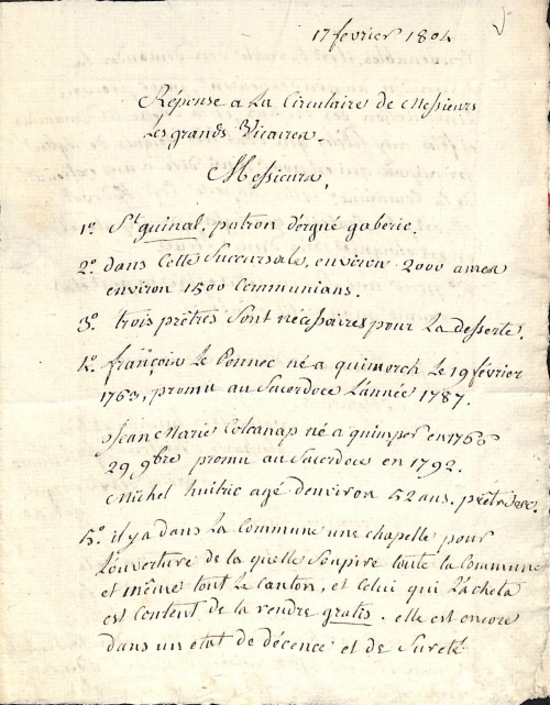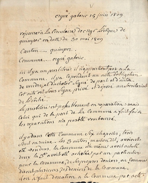 1804-1814 - Enquêtes diocésaines sur l'état de la paroisse d'Ergué-Gabéric
