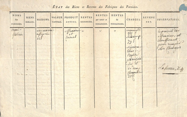 | Plusieurs formulaires d'enquêtes émis par les services diocésains auxquels doivent répondre les curés desservants [1], sur les églises et chapelles, les revenus et les charges.