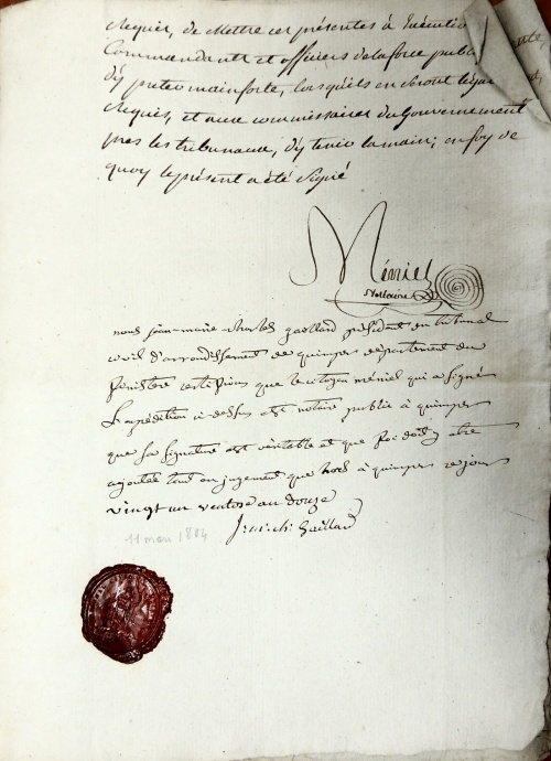| Le document de restitution de la chapelle suite à la vente aux enchères en 1794 lors des adjudications des biens nationaux.