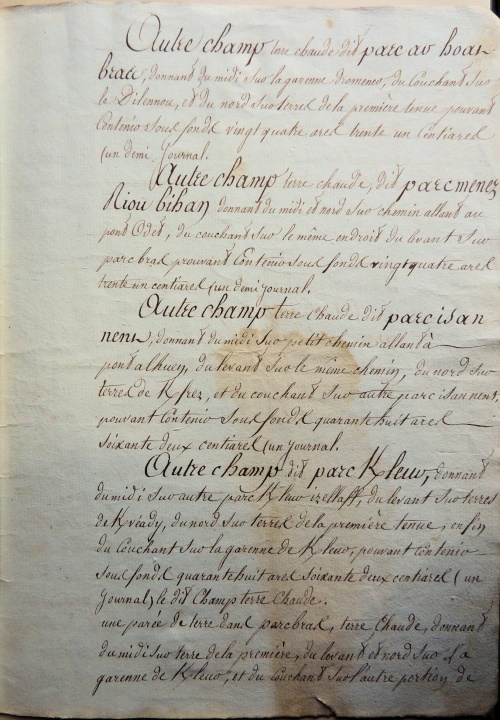 - Terres chaudes, s.f.pl. : terres cultivables, par opposition aux terres froides ; exploitées en rotation triennale, soit blé noir, seigle, avoine (Jean Le Tallec 1994). [Terme] [Lexique] [Ref.↑ 10,00 10,01 10,02 10,03 10,04 10,05 10,06 10,07 10,08 10,09 10,10 10,11 10,12 10,13 10,14 10,15 10,16 10,17 10,18 10,19 10,20 10,21 10,22 10,23 10,24 10,25 10,26 10,27 10,28 10,29 10,30 10,31 10,32 10,33 10,34]