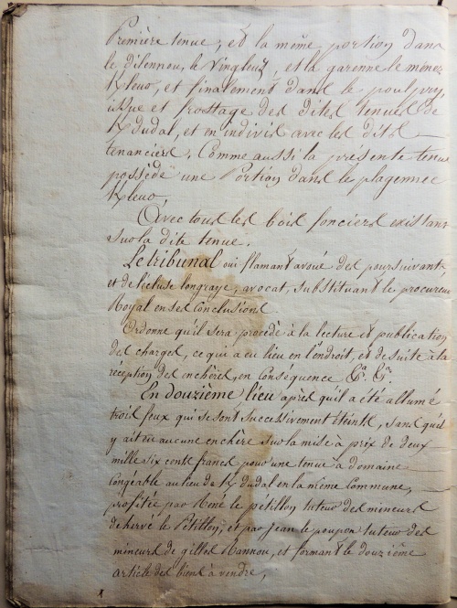 1809 - Vente par expropriation forcée des deux tenues de Kerdudal