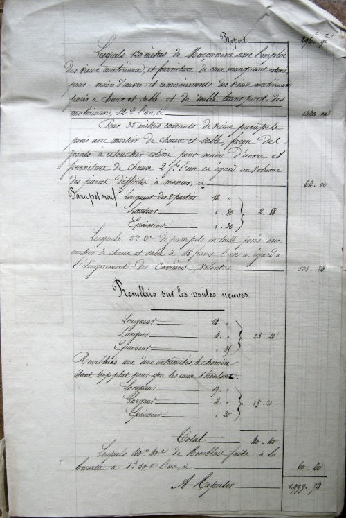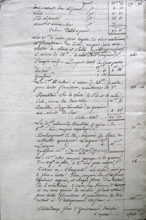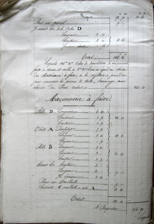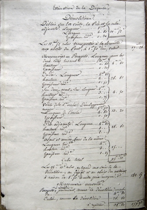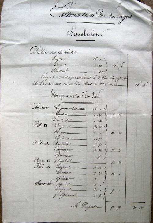 Il sera fait, pour le complément des parapets aux extrémités du pont, indépendamment des reconstruction de cette espèce, 12 mètres conran(t)s de parapets entièrement à neuf, en quatre parties.