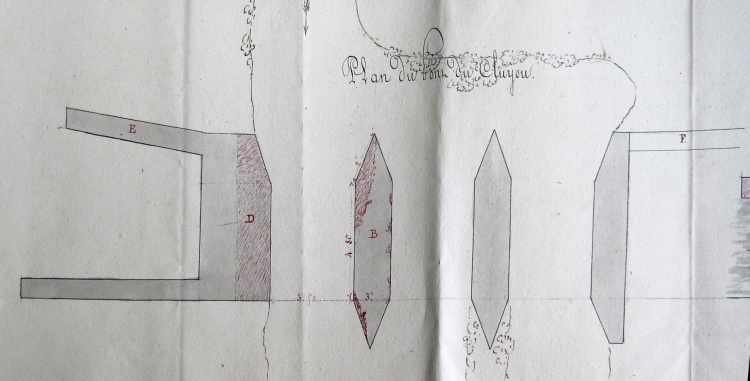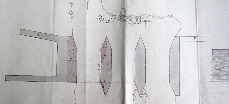 Celle marquée D en aval qui soutient les terres sera démolie dans une épaisseur de 1m 50 pour bien lier la nouvelle maçonnerie avec l'ancienne.