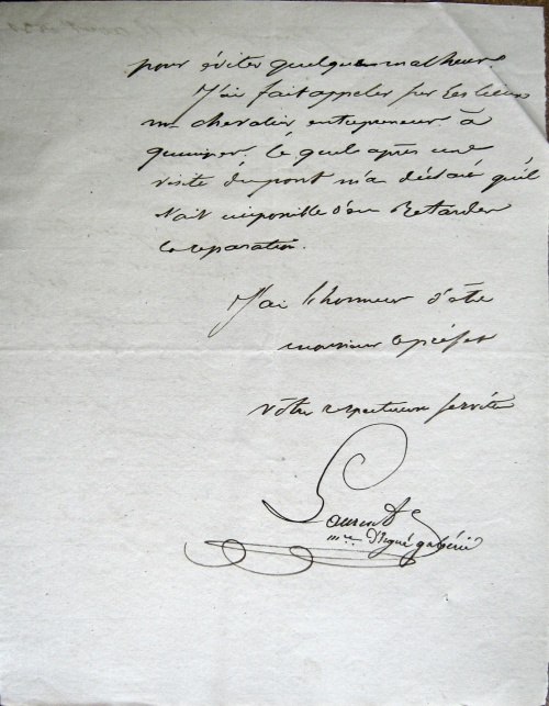 J'ai l'honneur d'être monsieur le préfet votre respectueux serviteur. Laurent, maire d'Ergué-Gabéric.