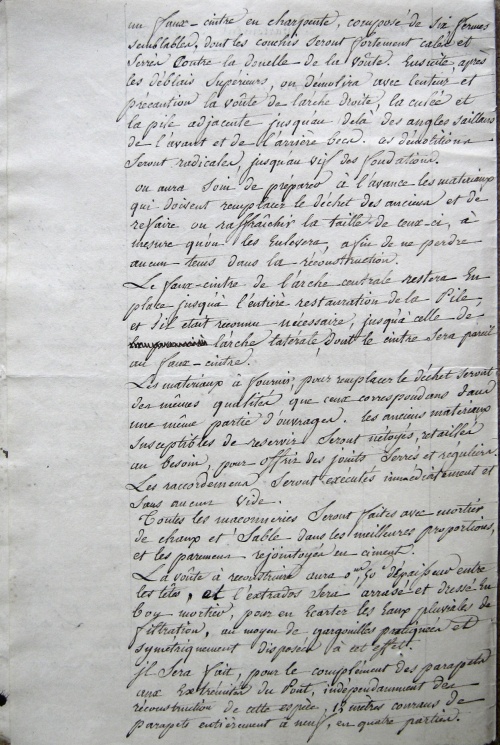 Le faux-cintre de l'arche centrale restera en place jusqu'à l'entière restauration de la pile, et s'il était reconnu nécessaire, jusqu'à celle de l'arche latérale, dont le cintre sera pareil au faux-cintre.