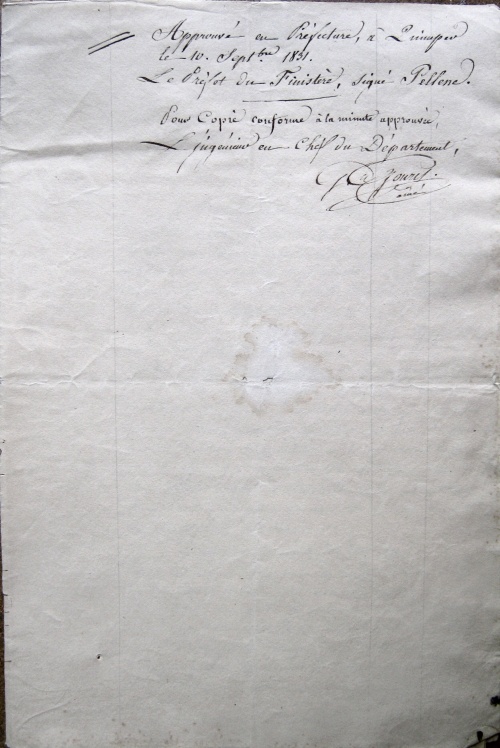 Je suis avec respect, monsieur le préfet, votre très humble et très obéissant serviteur. L'ingénieur en chef-Directeur du finistère.