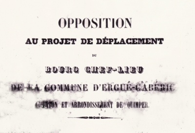 Une ENQUÊTE de commodo vel incommodo [1] est ouverte à la Mairie d'Ergué-Gabéric, par autorisation de l'Administration supérieure, à l'occasion du projet de DÉPLACEMENT du chef-lieu de cette Commune, approuvé par la majorité de son Conseil municipal, en une délibération du 10 Mai 1840.