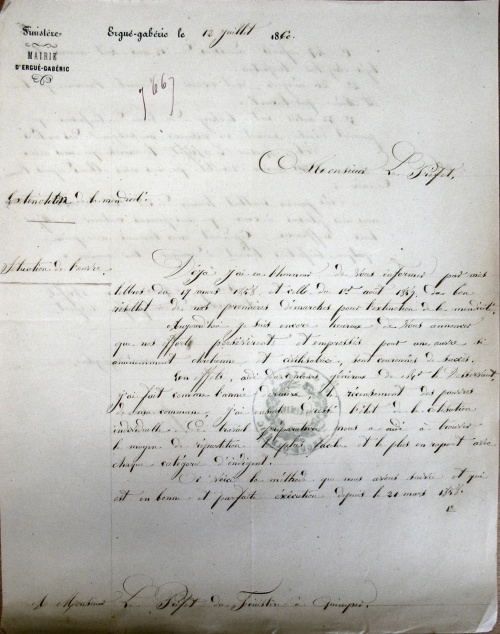 1858 - Lettres du maire d'Ergué-Gabéric et du préfet [2]