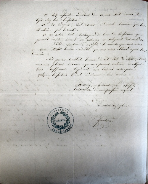 J'ai l'honneur de répondre à votre lettre du 8 de ce mois en vous faisant connaître que l’œuvre de l'extinction de la mendicité est tout-à-faire établie dans ma commune. Les membres du bureau se réunissent tous les trois mois pour régler cette œuvre et ils partagent avec beaucoup de soins à tous les nécessiteux qui se présentent, l'aumône chacun selon leur besoin.